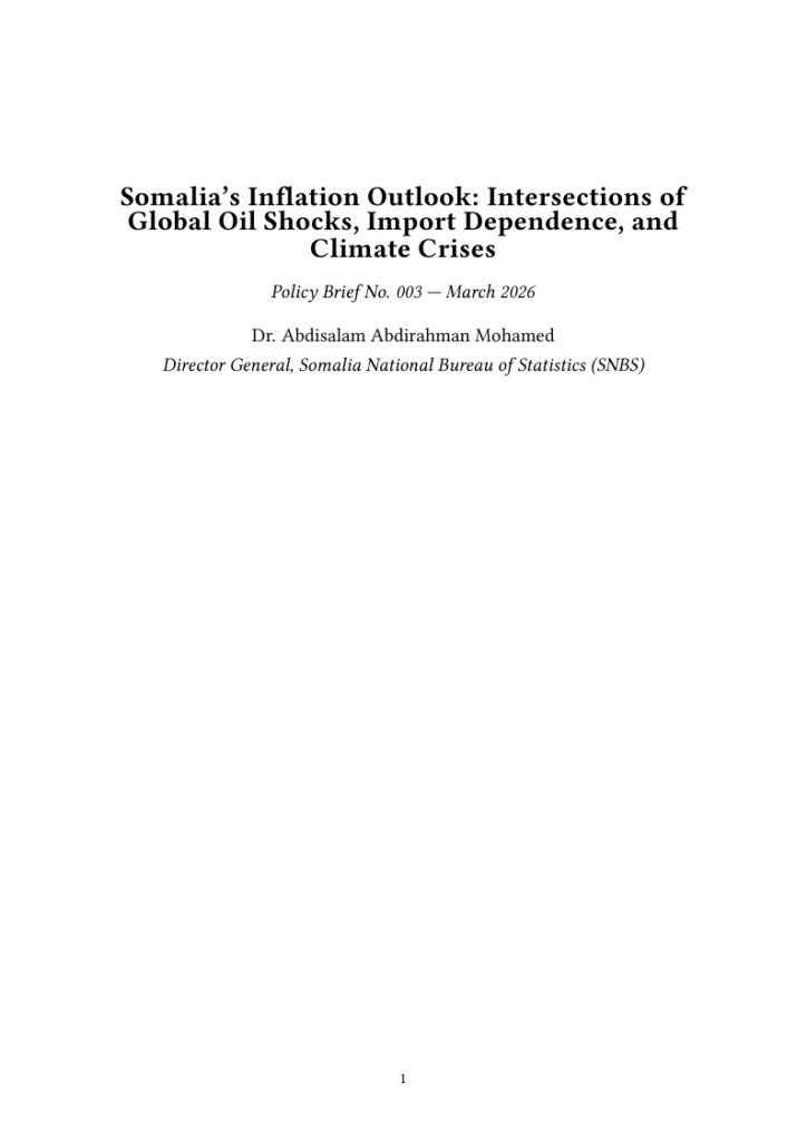 The Somalia National Bureau of Statistics produces policy briefs to provide concise, accessible,and practical policy recommendations, enabling the development of evidence-based policy decisions and actions.